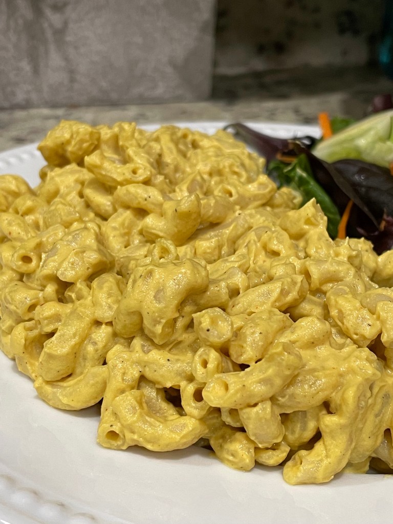 Soak your cashews either overnight the night before or morning of wanting to make this recipe. Once cashews are soaked they can be drained and rinsed and placed in fridge for 1 to 2 days before use. Boil your water and cook pasta of choice according to package directions blending your cheese sauce. Acorn squash can be cooked in instant pot or baked or steamed ahead of time. I cut mine in half and remove seeds. Place in instant pot with 1 cup water for eight minutes then removed skin. Add all the ingredients except the pasta to the blender and blend until super creamy. If you don’t use tahini add an extra 2 tablespoons of olive oil or water. After pasta is done cooking drain and add the cashew cheese sauce.